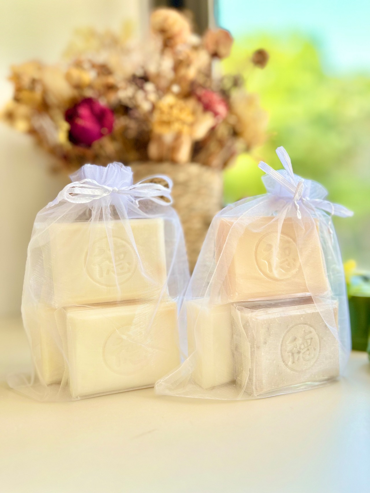 ●手作り純石けんは、1ヵ月、2ヵ月と熟成が進みますと多少変色・変形し重量も変化しますが品質に問題はございません。サイズや重量は目安とお考えください。