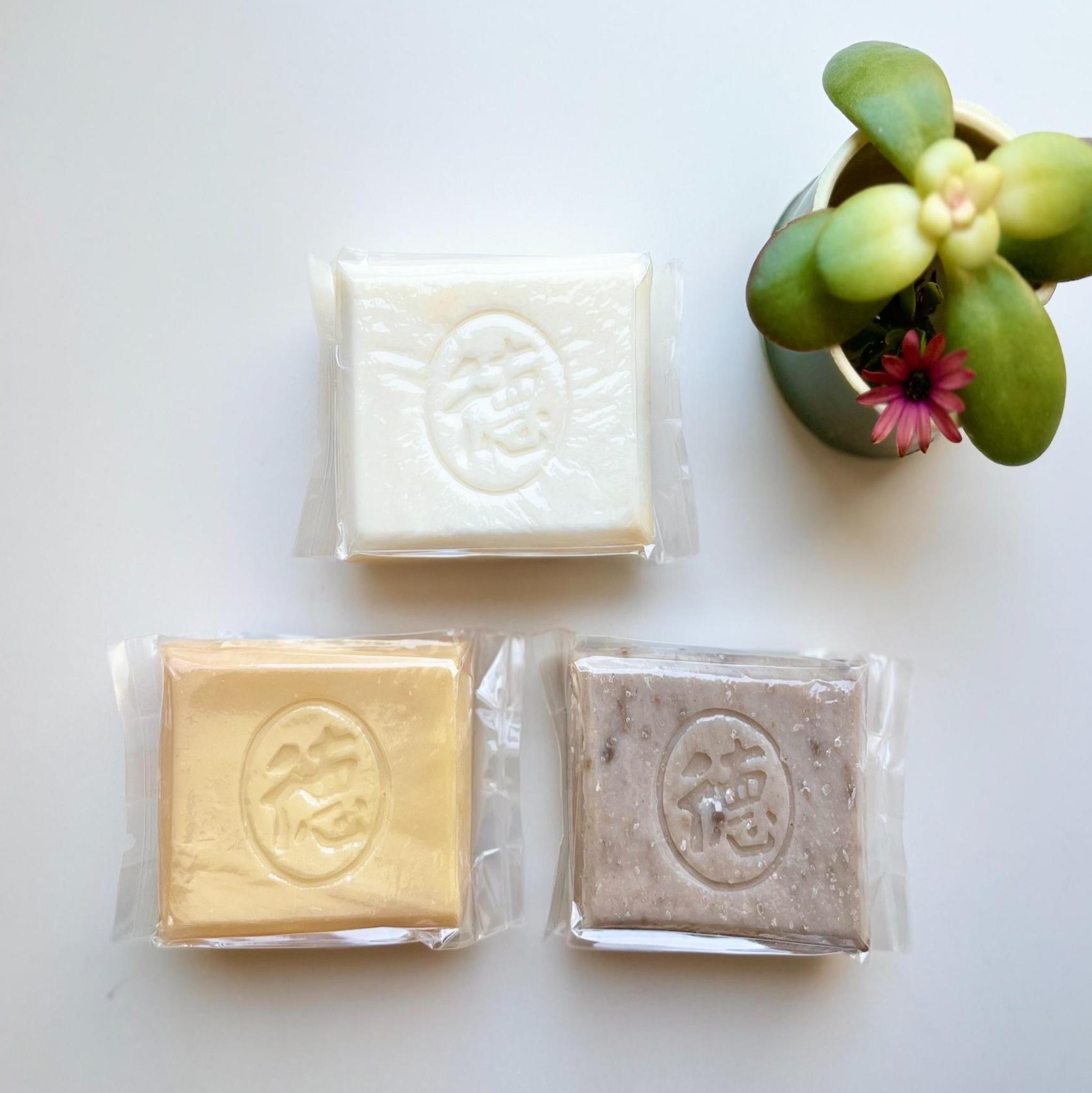 【訳あり】徳岡さんの手作り石けん・ナチュラル・青森ヒバ油・モロッコガッスール 3個セット